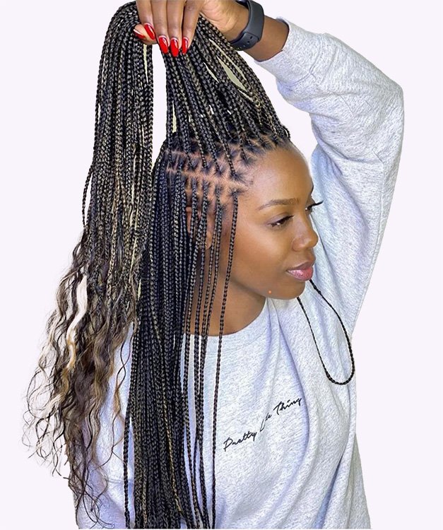 Intricate and elegant, micro braids are small, delicate plaits that offer a natural, flowing look. They’re lightweight and ideal for creating flexible, long-lasting hairstyles.